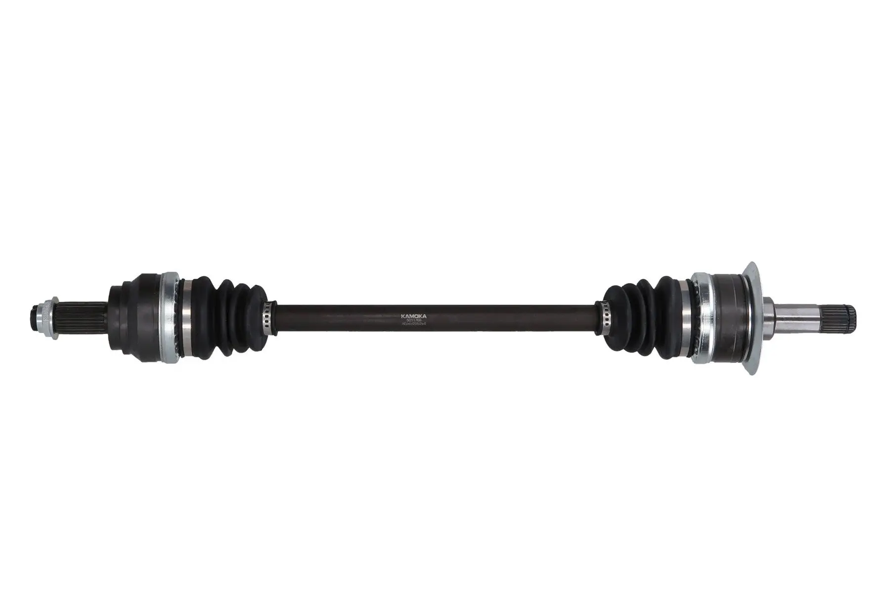Cardan KAMOKA 5011767 Pour véhicule avec Côté d'assemblage: Essieu arrière gauche Critères Denture extérieure, côté différentiel : 27 Denture extérieure, côté roue : 30 Diamètre de la bague détanchéité [mm] : 65 mm Diamètre de la rotule côté roue [mm] : 94 mm Diamètre de la rotule du côté boîte de vitesses [mm] : 94 mm