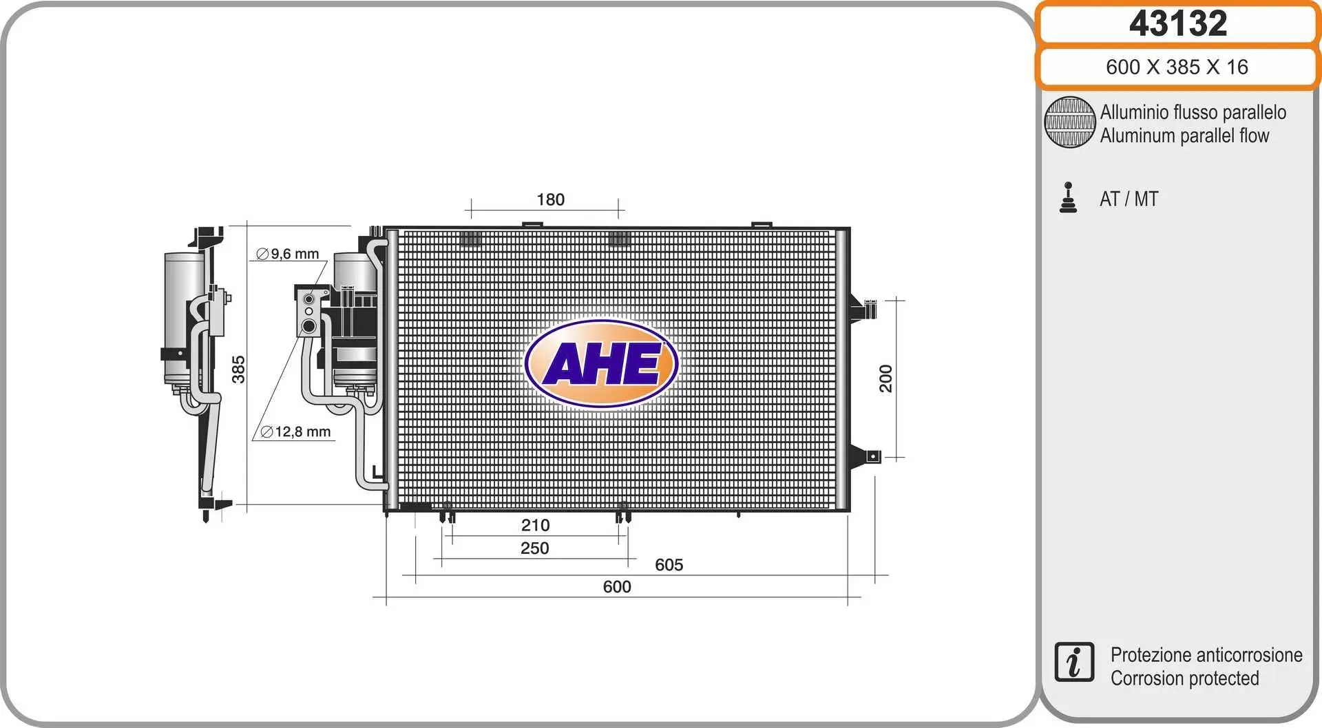 Radiateur climatisation AHE 43132 Critères Largeur de filet [mm] : 385 mm Longueur de filet [mm] : 600 mm Profondeur de filet [mm] : 16 mm