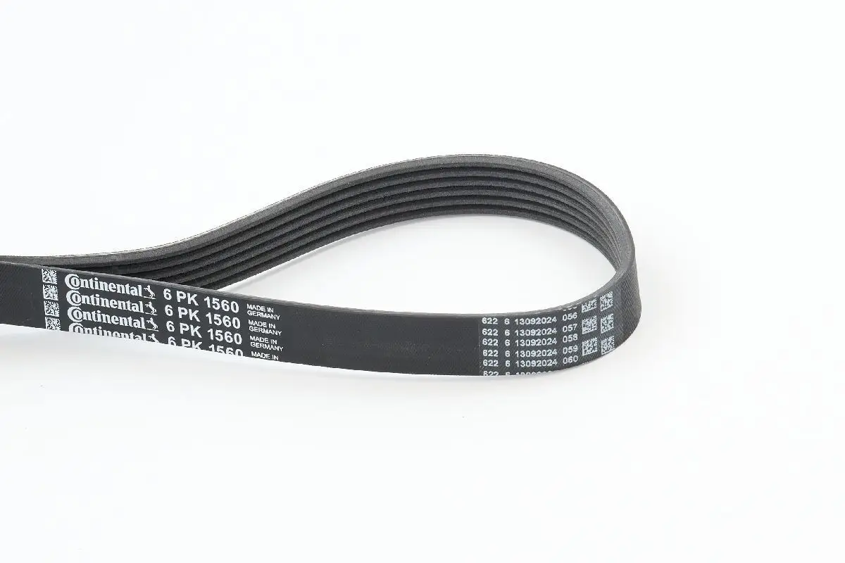 Courroie CONTITECH 6PK1560 Pour véhicule avec Année jusqu'à 07.1995 Périphériques entraînés Alternateur, Pompe à eau, Pompe de direction assistée Critères Longueur [mm] : 1 560 mm Nombre de gorges : 6 Poids [kg] : 0,161 kg