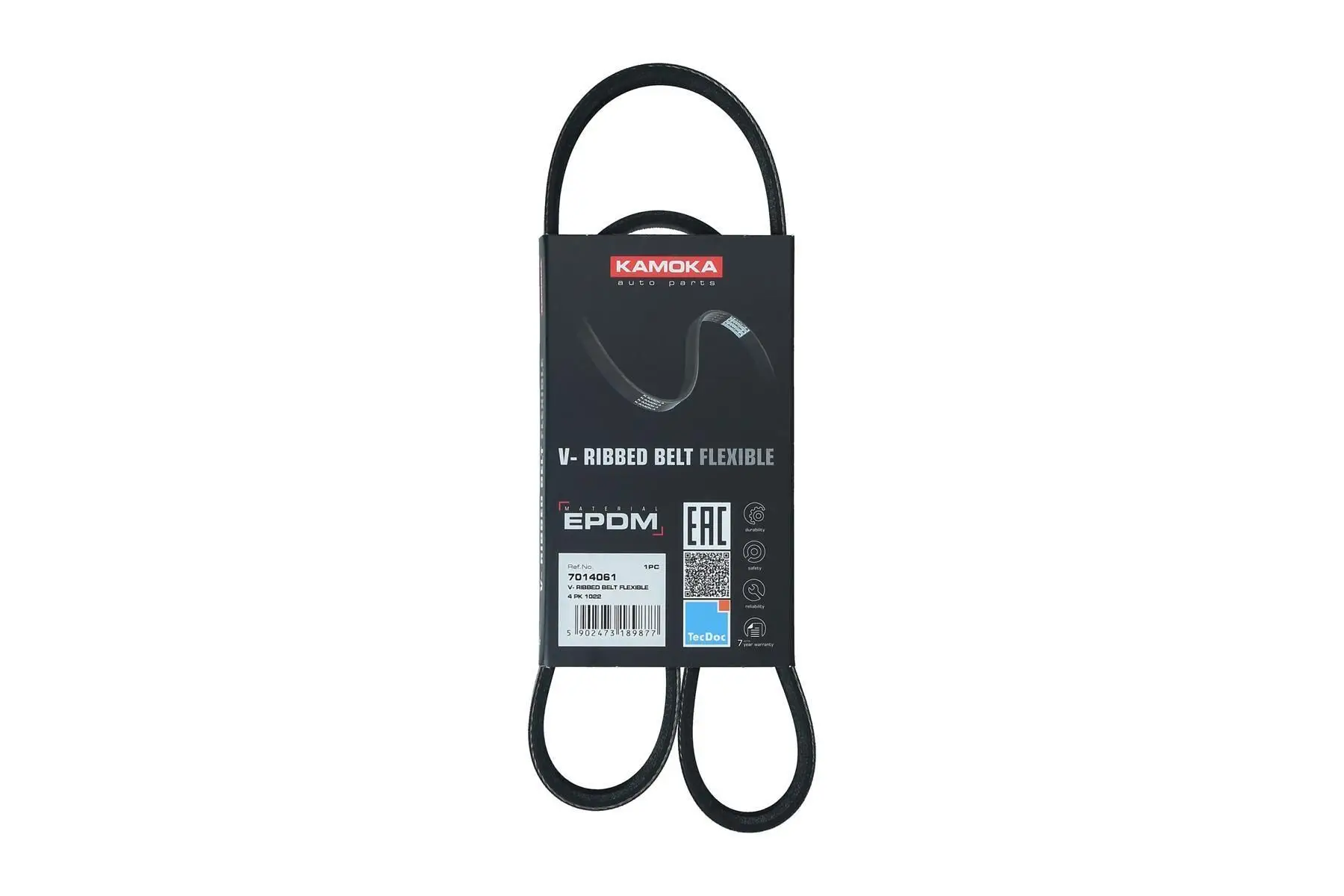 Courroie KAMOKA 7014061 Pour véhicule avec Périphériques entraînés Pompe de direction assistée Critères Largeur [mm] : 14 mm Longueur [mm] : 1 022 mm Matériel : EPDM (éthylène-propylène-diène-caoutchouc) Nombre de gorges : 4 Propriété chimique : élastique