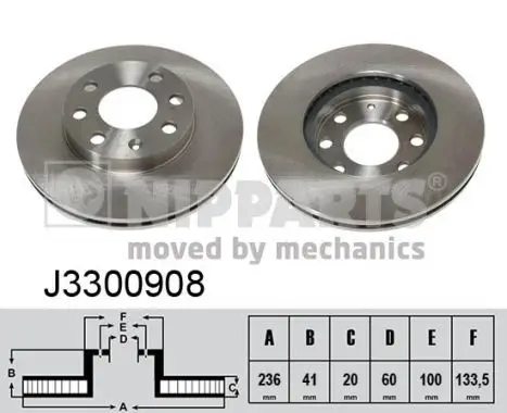 Jeu de 2 Disques de frein NIPPARTS J3300908 Pour véhicule avec Année à partir de 09.1995, jusqu'à 08.1996 Critères Cercle de percage -Ø [mm] : 100 mm Diamètre du centrage [mm] : 60 mm Diamètre extérieur [mm] : 236 mm Diamètre moyeu de roue [mm] : 133,5 mm Endroit d'assemblage : Essieu avant