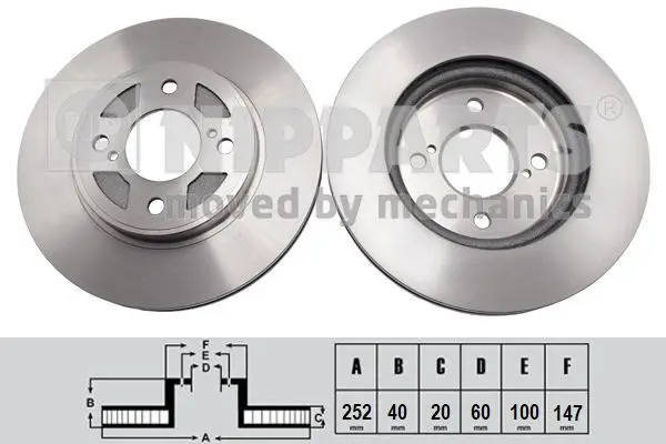 Jeu de 2 Disques de frein NIPPARTS N3308033 Critères Cercle de percage -Ø [mm] : 100 mm Diamètre du centrage [mm] : 60 mm Diamètre extérieur [mm] : 252 mm Diamètre moyeu de roue [mm] : 147 mm Endroit d'assemblage : Essieu avant