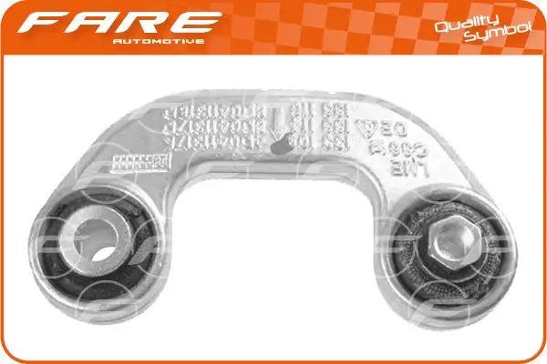 Bielette suspension FARE F0997A Critères Barre/montant : Barre d'accouplement Endroit d'assemblage : Essieu avant droit Épaisseur [mm] : 38 mm Hauteur [mm] : 32 mm Longueur [mm] : 125 mm