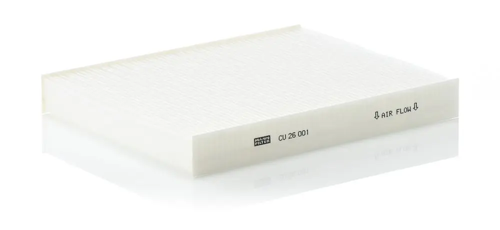 Filtre habitacle MANN-FILTER CU 26 001 Critères Endroit d'assemblage : derrière la boîte à gants Hauteur [mm] : 31 mm Largeur [mm] : 202 mm Longueur [mm] : 252 mm Règlement européen sur la sécurité des produits (GPSR) : IEC 60417-6183 expertise mécanique requise