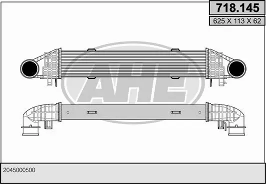 Intercooler, échangeur AHE 718.145 Critères Largeur de filet [mm] : 113 mm Longueur de filet [mm] : 625 mm Profondeur de filet [mm] : 62 mm