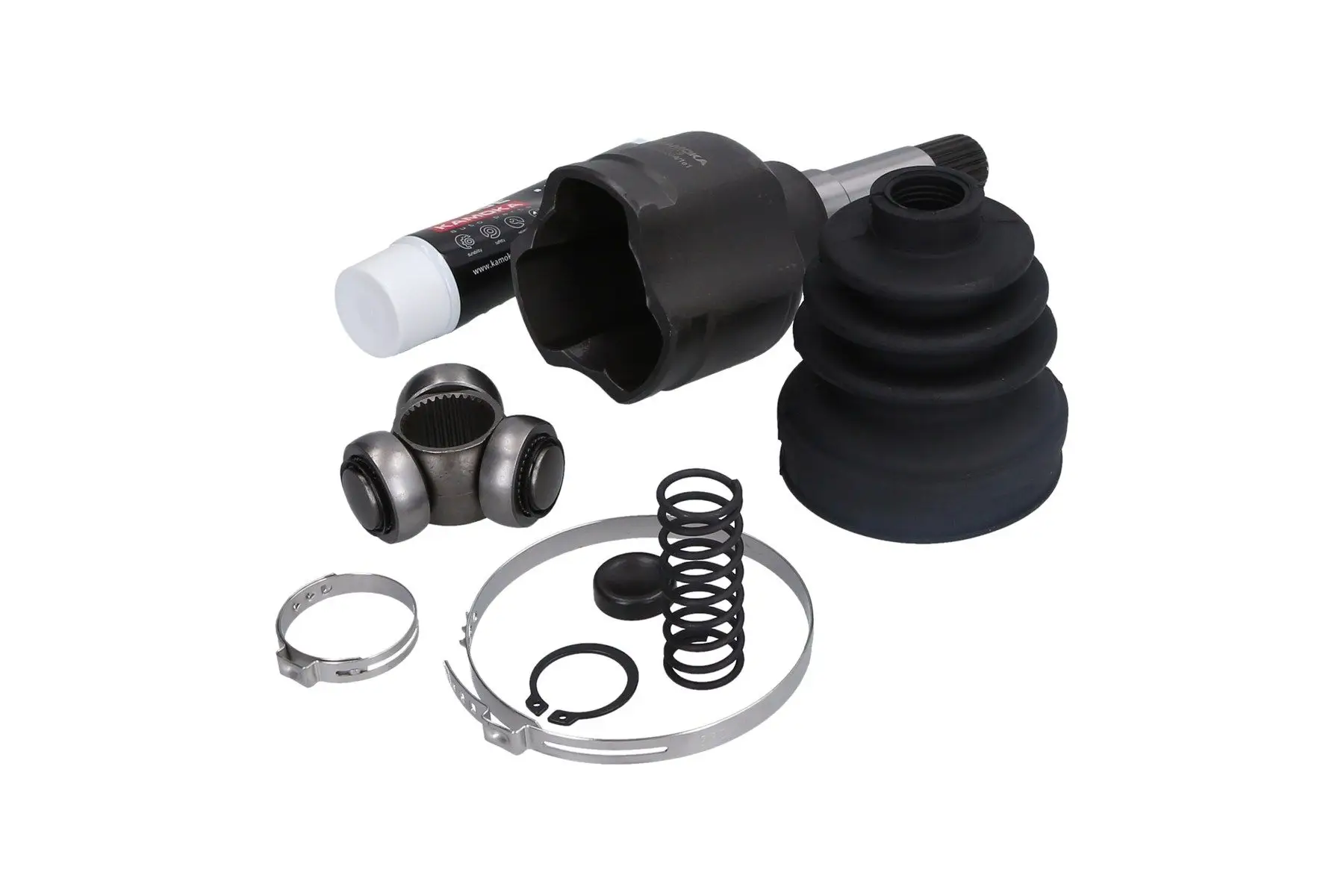 Tête cardan KAMOKA 6404 Pour véhicule avec Côté d'assemblage: Essieu avant gauche, côté roue Critères Denture extérieure, côté roue : 21 Denture intérieure, côté roue : 21 Diamètre de la bague détanchéité [mm] : 49 mm Filetage : M20X1,5 Longueur [mm] : 135 mm
