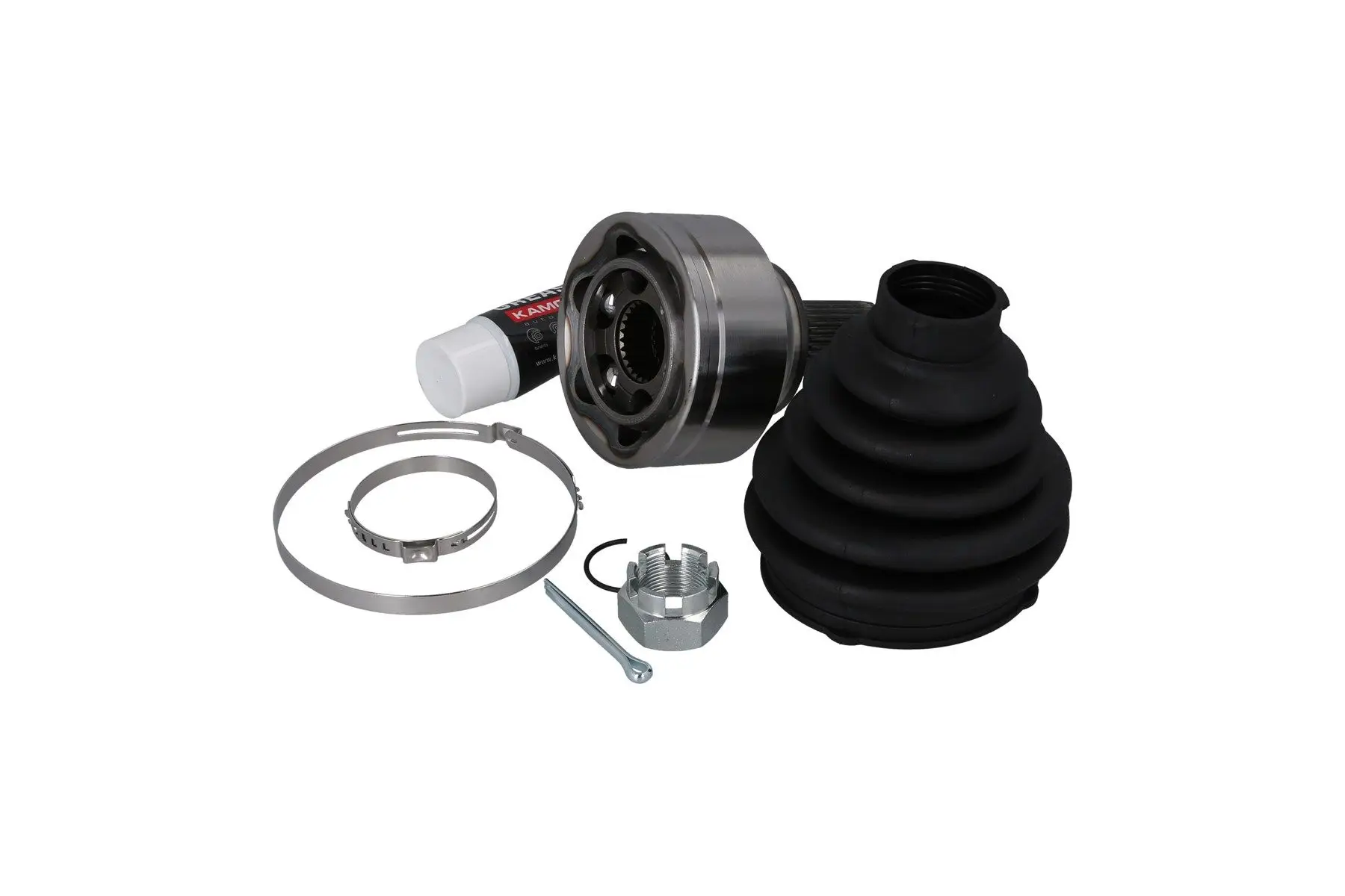 Tête cardan KAMOKA 6402 Pour véhicule avec Côté d'assemblage: Essieu avant gauche, Essieu avant droit, côté roue Critères Denture extérieure, côté roue : 28 Denture intérieure, côté roue : 26 Diamètre de la bague détanchéité [mm] : 58,5 mm Filetage : M24X1,5 Longueur [mm] : 154 mm