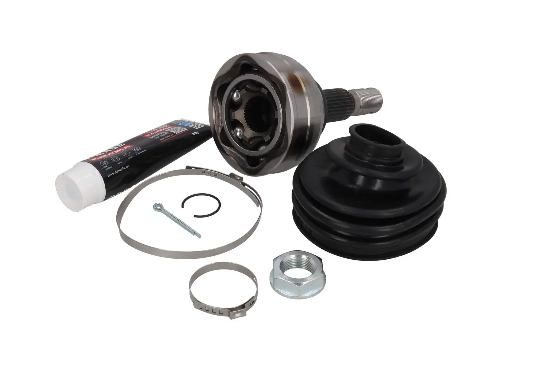 Tête cardan KAMOKA 6394 Pour véhicule avec Côté d'assemblage: Essieu avant gauche, côté roue Critères Denture extérieure, côté roue : 28 Denture intérieure, côté roue : 39 Diamètre de la bague détanchéité [mm] : 58,6 mm Filetage : M24X1,5 Longueur [mm] : 157 mm