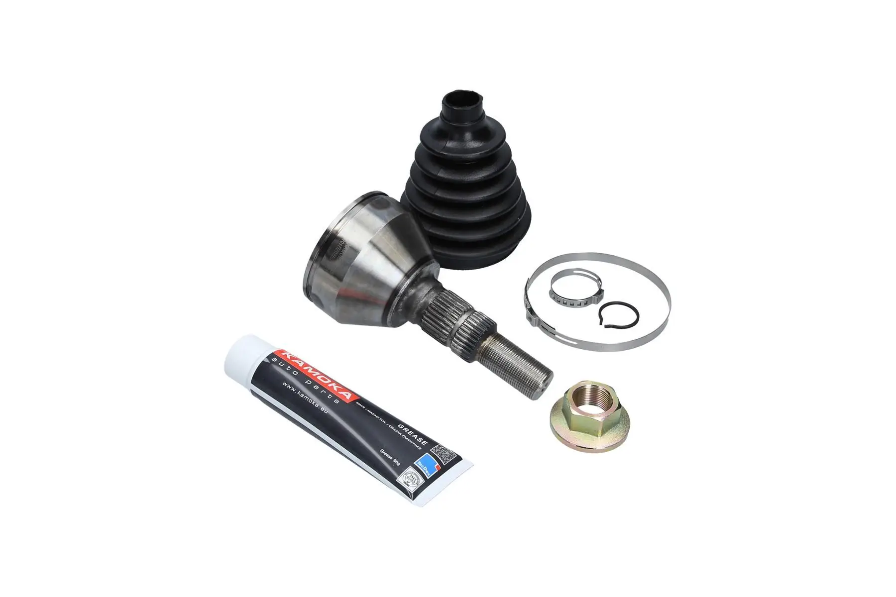 Tête cardan KAMOKA 6035 Critères Denture extérieure, côté roue : 30 Denture intérieure, côté roue : 25 Diamètre 1 [mm] : 26 mm Diamètre de la bague détanchéité [mm] : 52 mm Endroit d'assemblage : côté roue