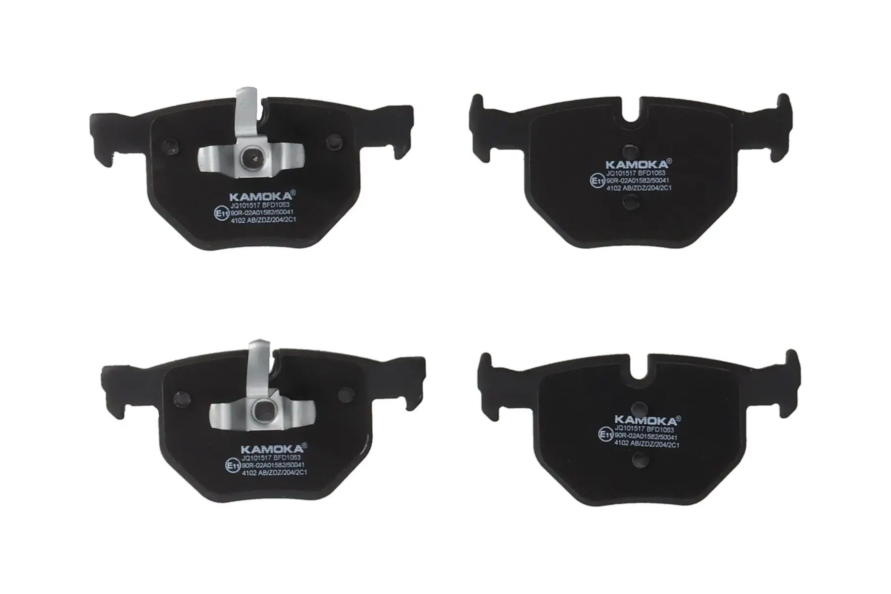 Kit de plaquettes de frein KAMOKA JQ101517 Critères Endroit d'assemblage : Essieu arrière Épaisseur [mm] : 17 mm Hauteur 1 [mm] : 58 mm Hauteur 2 [mm] : 59 mm Indicateur d'usure : préparé pour l'indicateur d'usure, contact de signal d'usure exclu