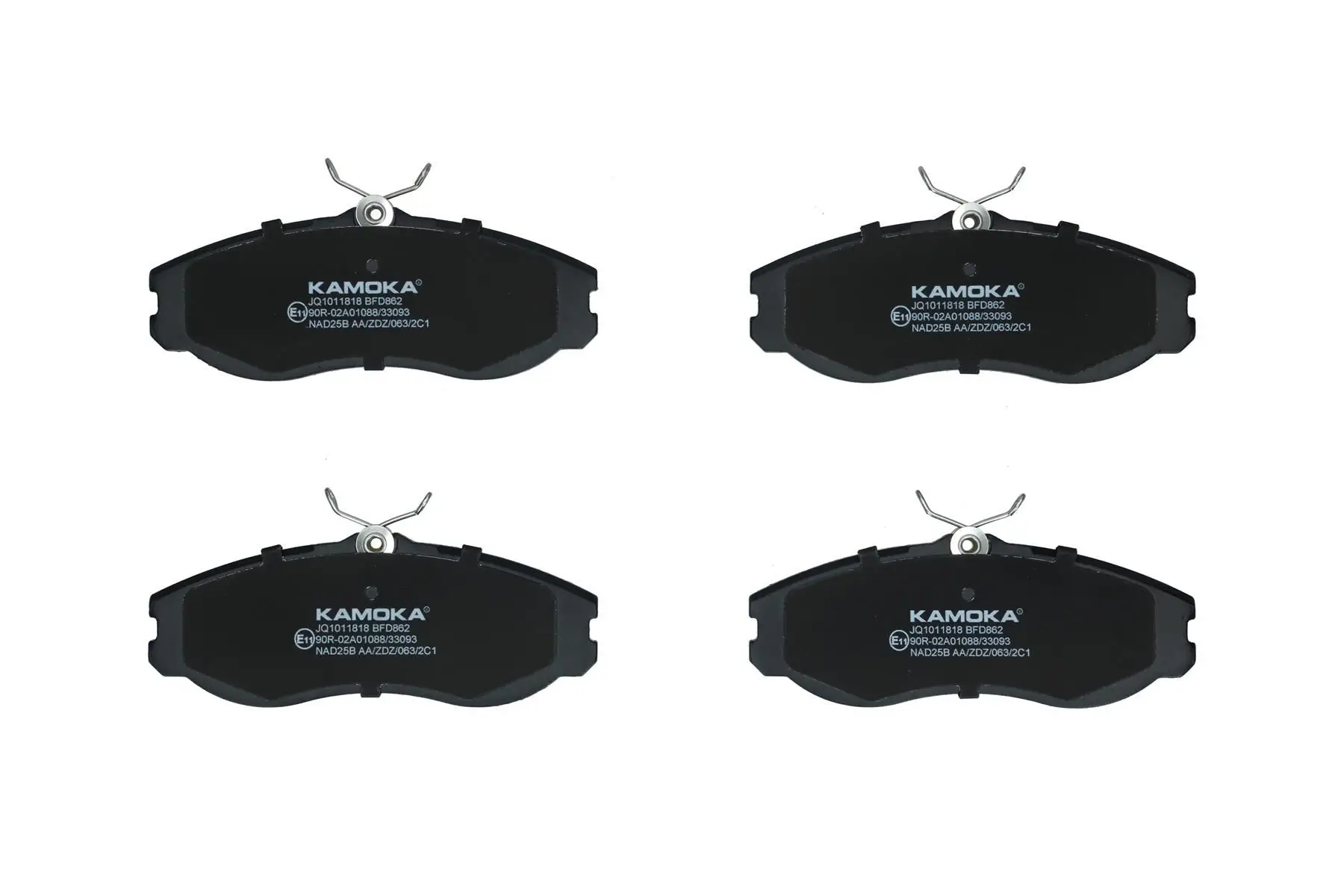 Kit de plaquettes de frein KAMOKA JQ1011818 Critères Endroit d'assemblage : Essieu avant Épaisseur [mm] : 15 mm Hauteur [mm] : 56 mm Indicateur d'usure : contact de signal d'usure exclu Largeur [mm] : 145 mm