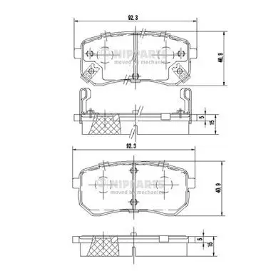 Kit de plaquettes de frein NIPPARTS J3610307 Critères Endroit d'assemblage : Essieu arrière Épaisseur [mm] : 15 mm Hauteur [mm] : 92,3 mm Largeur [mm] : 40,9 mm Marque de conformité : ECE R90 APPROVED