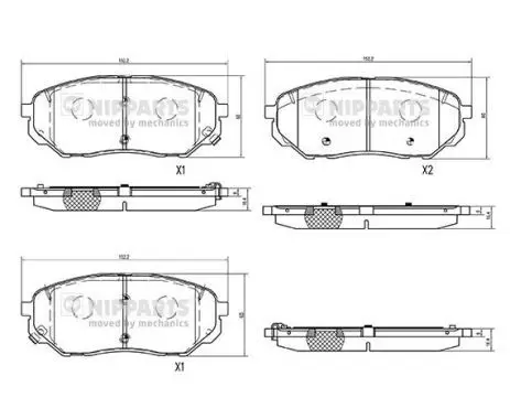 Kit de plaquettes de frein NIPPARTS N3600335 Critères Endroit d'assemblage : Essieu avant Épaisseur [mm] : 16,4 mm Hauteur [mm] : 60 mm Indicateur d'usure : avec indicateur d'usure Largeur [mm] : 152,2 mm