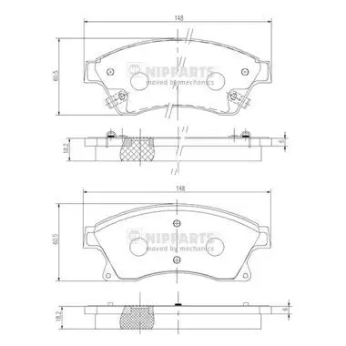 Kit de plaquettes de frein NIPPARTS N3600914 Pour véhicule avec Côté d'assemblage Essieu avant Critères Épaisseur [mm] : 18,2 mm Hauteur [mm] : 148 mm Largeur [mm] : 60,5 mm Marque de conformité : ECE R90 APPROVED