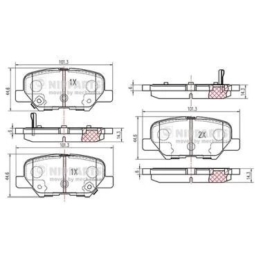 Kit de plaquettes de frein NIPPARTS N3615017 Critères Endroit d'assemblage : Essieu arrière Épaisseur [mm] : 14,3 mm Hauteur [mm] : 101,3 mm Largeur [mm] : 44,6 mm Spécification : ECE R90 APPROVED