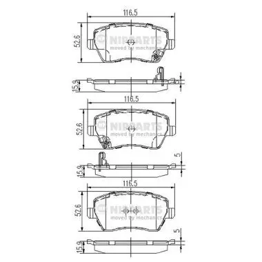 Kit de plaquettes de frein NIPPARTS J3608026 Critères Endroit d'assemblage : Essieu avant Épaisseur [mm] : 15,9 mm Hauteur [mm] : 116,5 mm Largeur [mm] : 52,6 mm Marque de conformité : ECE R90 APPROVED