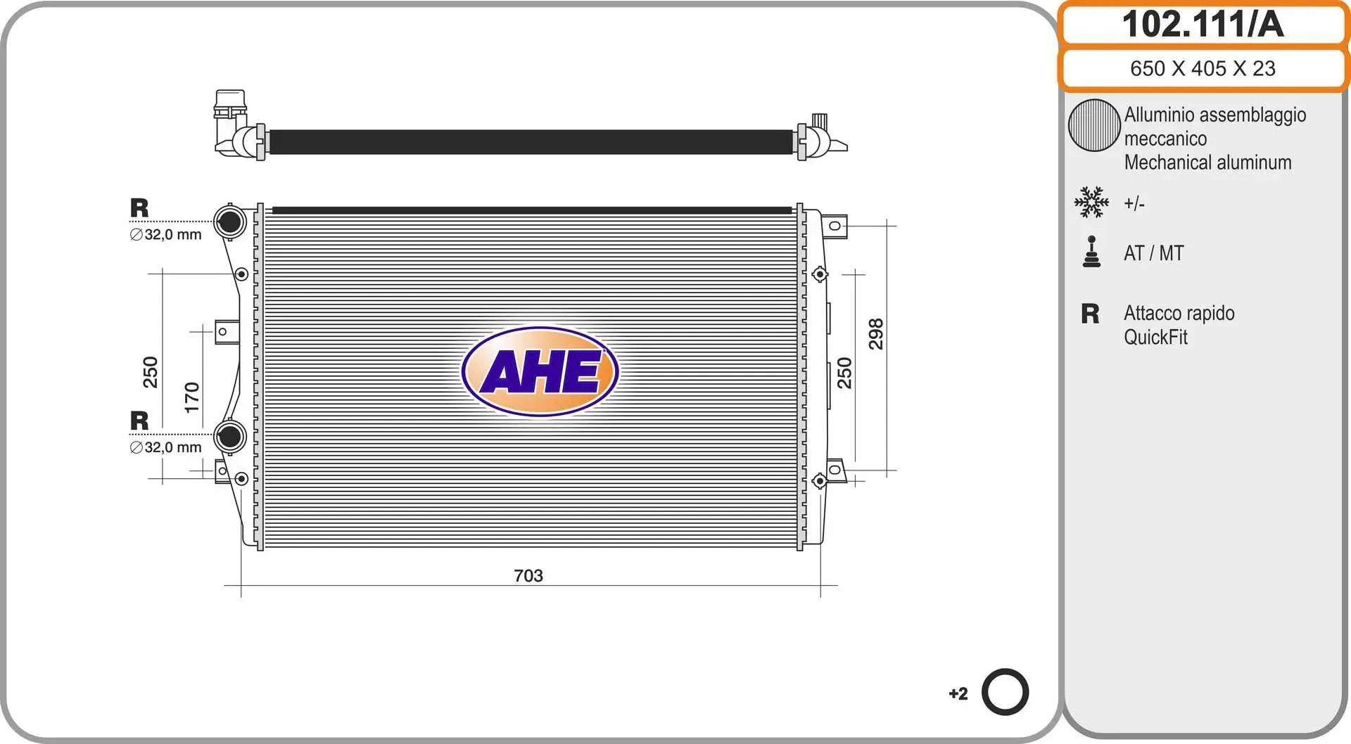 Radiateur, refroidissement du moteur NRF 53139 Pour véhicule avec Chauffage et refroidissement Radiateur additionnel pour numéro PR 8Z4, 8Z5, 8Z7 pour numéro PR 8Z6, 8Z9 pour véhicules sans système de climatisation Radiateur additionnel Critères Largeur de filet [mm] : 452 mm Longueur de filet [mm] : 652 mm Matériel : Aluminium Profondeur de filet [mm] : 32 mm Version de radiateur : ailettes jointes mécaniquement