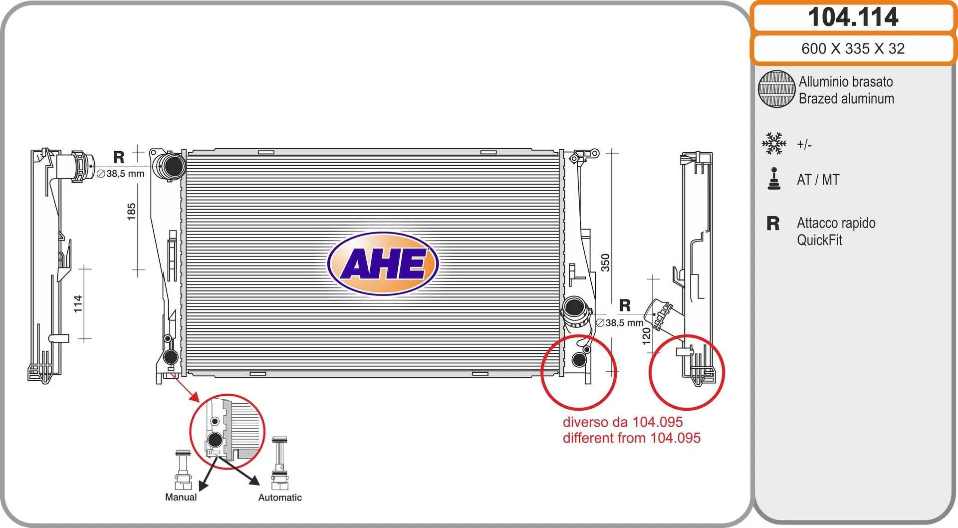 • Radiateur, refroidissement du moteur AHE 104.114