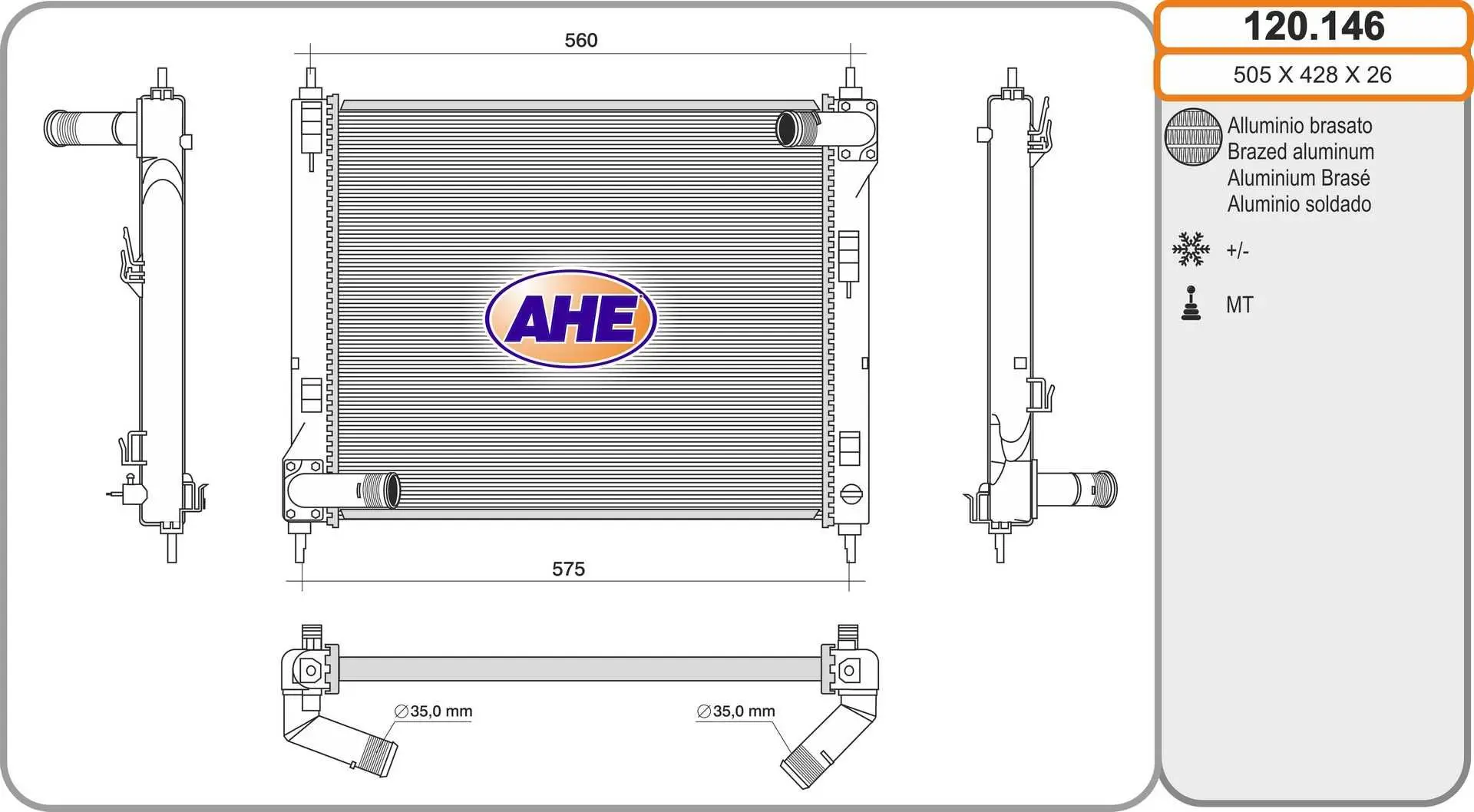 Radiateur, refroidissement du moteur KALE OTO RADYATÖR 346005 Pour véhicule avec pour véhicules avec/sans climat. Critères Largeur de filet [mm] : 428 mm Longueur de filet [mm] : 505 mm Matériel : Aluminium, Matière plastique Profondeur de filet [mm] : 26 mm Type d'entraînement : boîte de vitesses manuelle