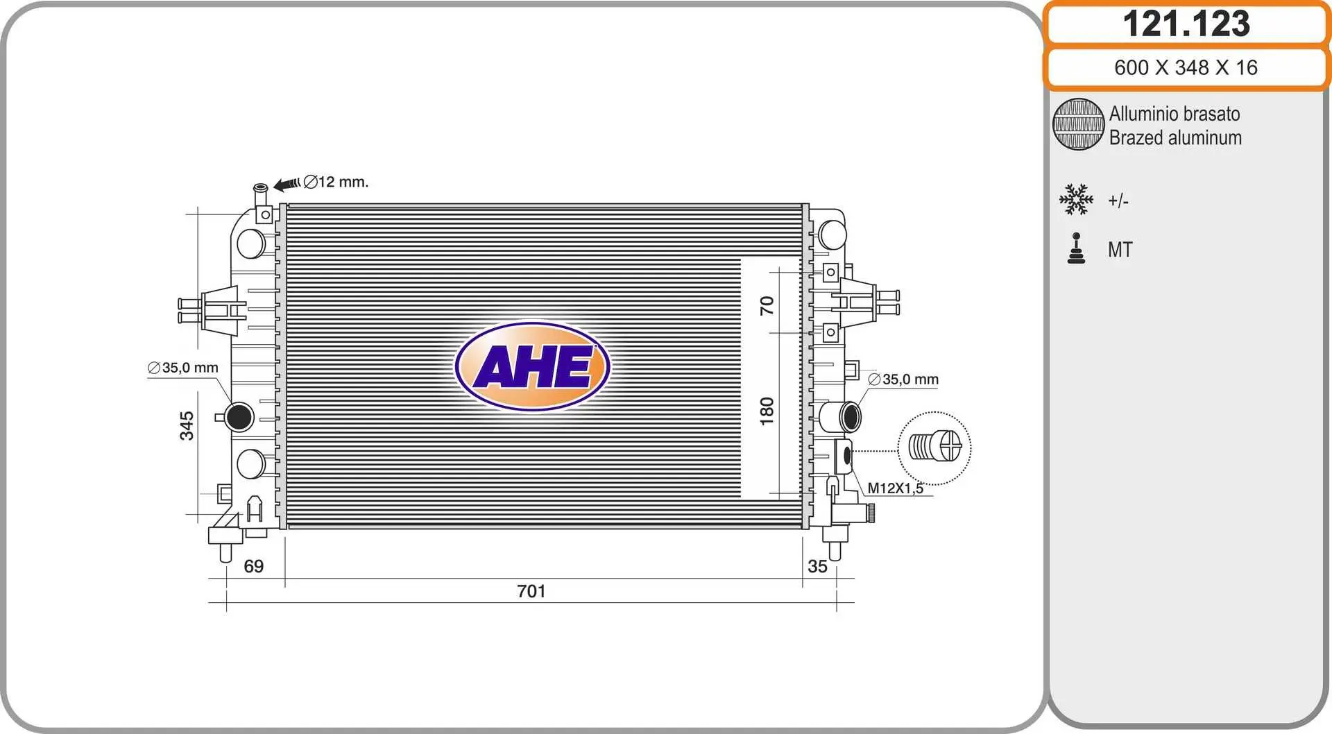 • Radiateur, refroidissement du moteur AHE 121.123