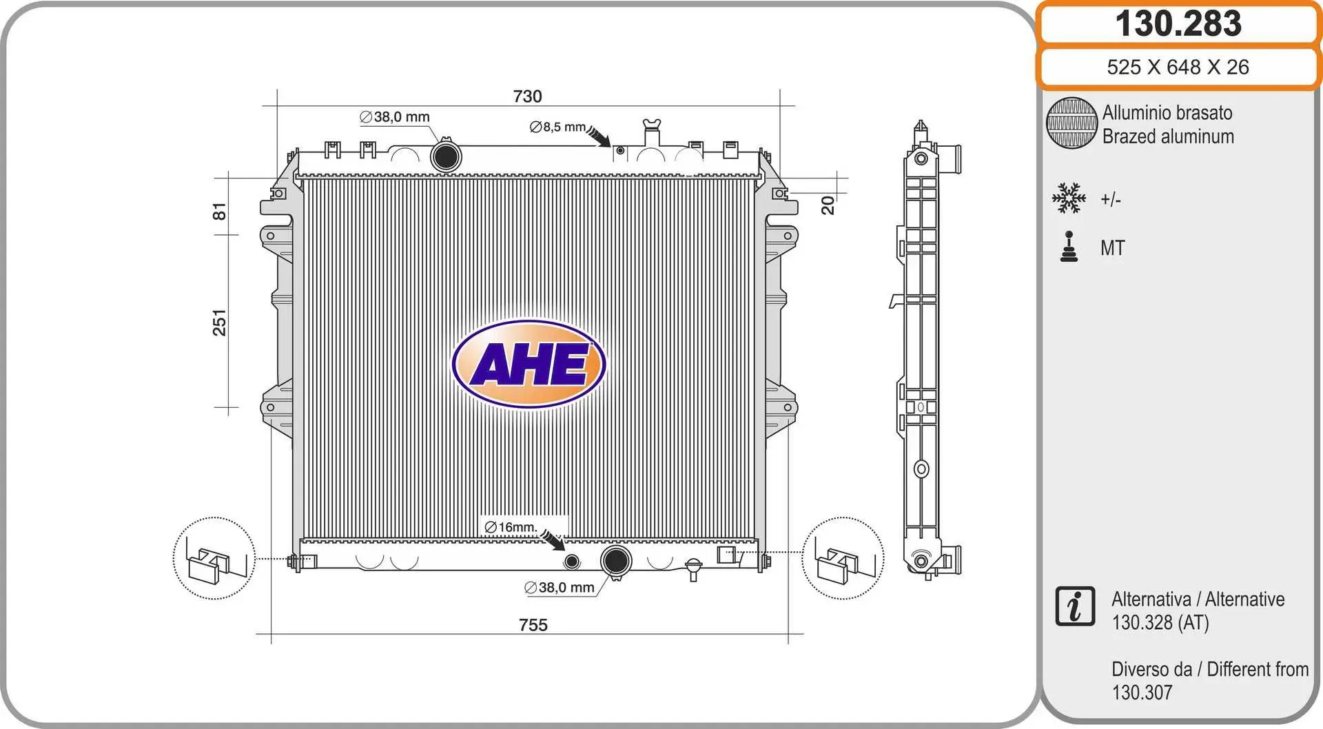 Radiateur, refroidissement du moteur NRF 53921 Critères Article complémentaire / Info complémentaire 2 : avec pièces d'assemblage Largeur de filet [mm] : 525 mm Longueur de filet [mm] : 655 mm Matériel : Aluminium Profondeur de filet [mm] : 17 mm