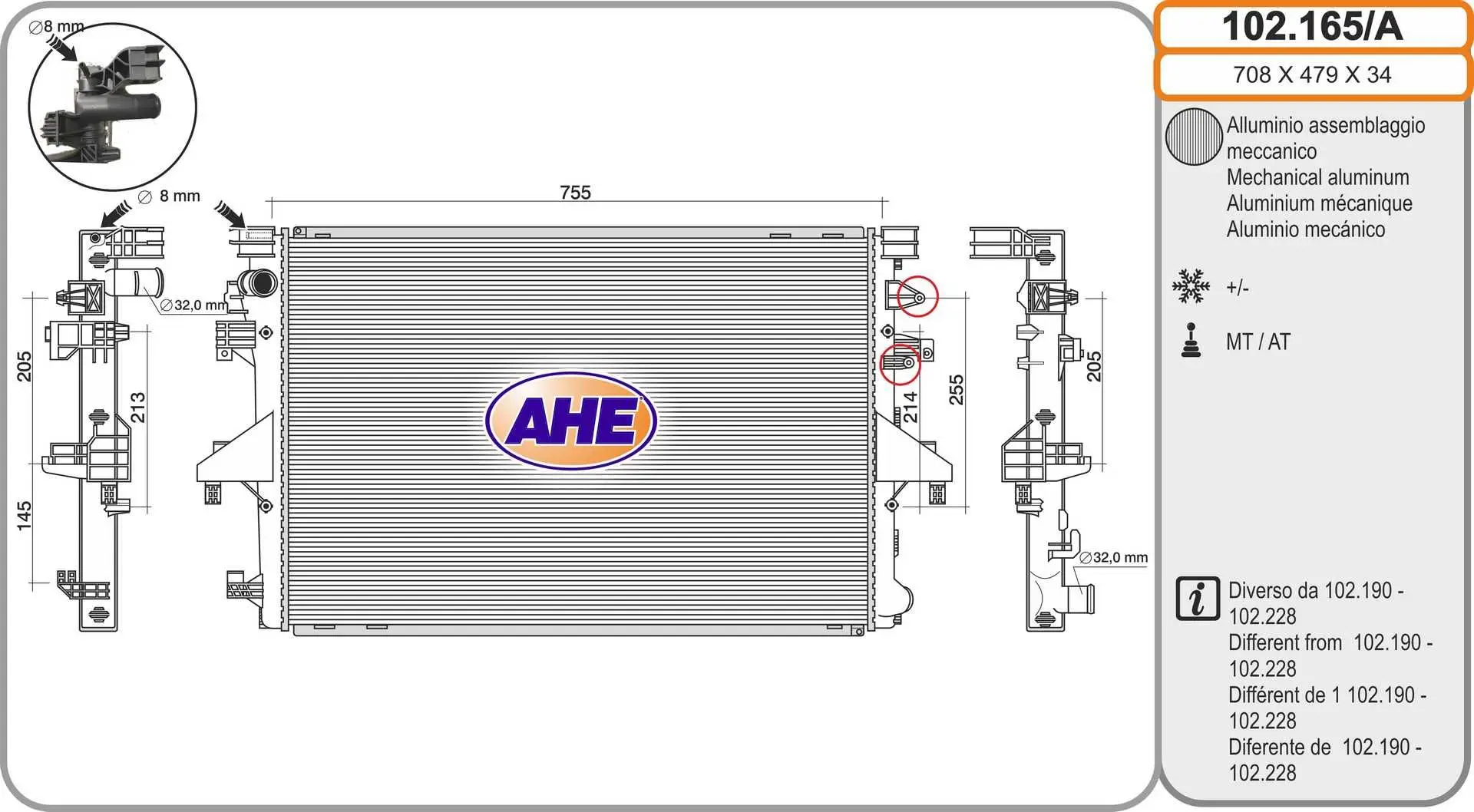 • Radiateur, refroidissement du moteur AHE 102.165/A