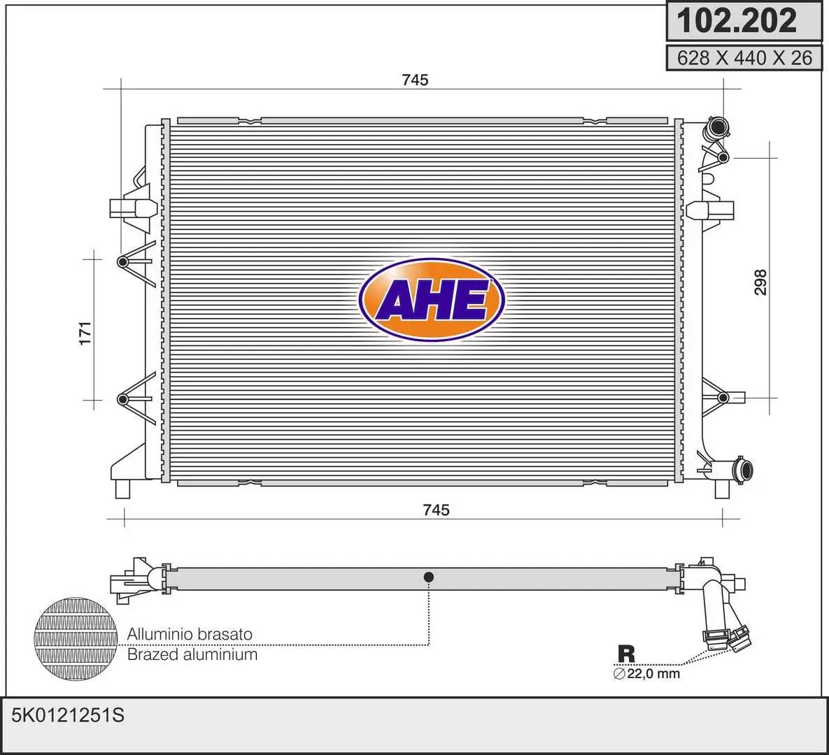 Radiateur, refroidissement du moteur AHE 102.207 Pour véhicule avec Code moteur CZTA Transmission à double embrayage Critères Largeur de filet [mm] : 446 mm Longueur de filet [mm] : 648 mm Profondeur de filet [mm] : 32 mm