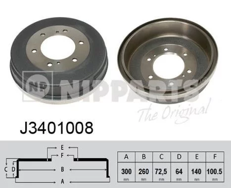 Jeu de 2 Tambour de frein NIPPARTS J3401008 Critères Cercle de percage -Ø [mm] : 140 mm Diam. ext du tambour de frein [mm] : 300 mm Diam. int. tambour frein [mm] : 260 mm Diamètre du centrage [mm] : 100,5 mm Endroit d'assemblage : Essieu arrière
