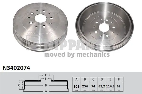 Jeu de 2 Tambour de frein NIPPARTS N3402074 Pour véhicule avec Côté d'assemblage Essieu arrière Critères Cercle de percage -Ø [mm] : 114,3 mm Diamètre de tambour : 254 mm Diamètre du centrage [mm] : 62 mm Diamètre extérieur du tambour de frein : 303 mm dimension max. d'extraction du tambour de frein : 256 mm
